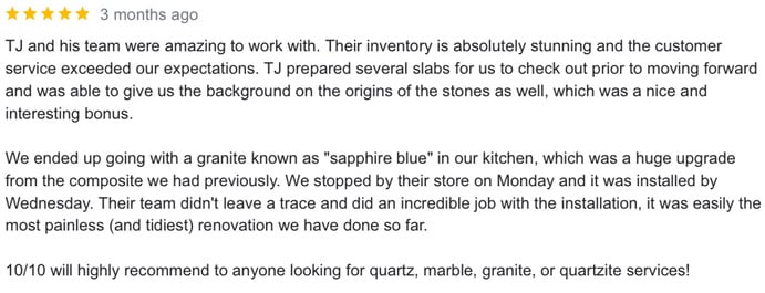 For questions about a wider variety of stones including marble, granite, quartz, quartzite, and onyx please contact us.